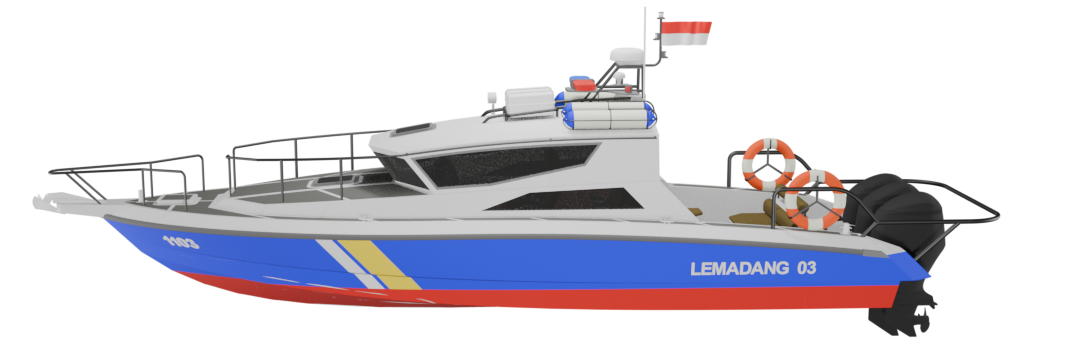 Lemadang 03 merupakan kapal yang dirancang dengan fokus pada performa tinggi, efisiensi, dan adaptabilitas di berbagai kondisi laut. Memiliki panjang 11,70 meter, lebar 3,40 meter, dan tinggi 1,30 meter, kapal ini dirancang untuk memberikan keseimbangan yang optimal antara stabilitas dan kecepatan. Dengan draft yang hanya 0,55 meter, kapal ini sangat cocok untuk berlayar di perairan dangkal maupun laut dalam, memungkinkan navigasi yang fleksibel di berbagai area maritim, termasuk pantai, sungai, maupun selat. Kapal ini dibuat dari bahan aluminium berkualitas tinggi, yang dikenal ringan namun sangat kuat. Material ini memberikan sejumlah keunggulan, seperti daya tahan yang luar biasa terhadap korosi, terutama di lingkungan laut yang keras. Selain itu, penggunaan aluminium mengurangi berat keseluruhan kapal, sehingga meningkatkan efisiensi bahan bakar dan kecepatan. Berat yang lebih ringan juga memperbaiki manuverabilitas, memungkinkan kapal untuk bergerak lebih gesit dan responsif, bahkan dalam kondisi laut yang menantang.